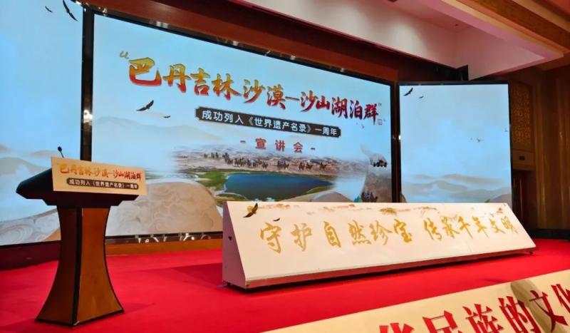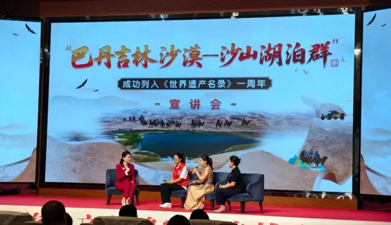 宣講會(huì)上,知名專家、一線工作者、志愿服務(wù)隊(duì)代表等宣講嘉賓和文旅從業(yè)者齊聚一堂,通過(guò)主題宣講、人物訪談的形式,共同回顧了“巴丹吉林沙漠—沙山湖泊群”申遺成功一周年以來(lái)的保護(hù)成果,立體展現(xiàn)了巴丹吉林沙漠的生態(tài)價(jià)值、保護(hù)實(shí)踐與時(shí)代意義,探討這片世界自然遺產(chǎn)的未來(lái)發(fā)展之路。