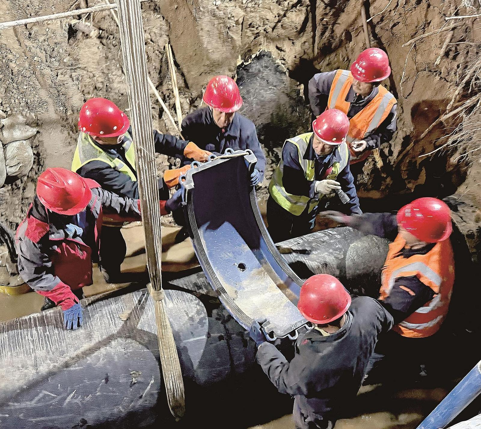 夜色漸深,氣溫持續(xù)下降,搶修現(xiàn)場卻燈火通明、熱火朝天。挖掘、排水、清理、焊接……每一個(gè)環(huán)節(jié)都爭分奪秒,井然有序。黨員干部沖鋒在前,帶頭跳入泥水中作業(yè);其他維修人員輪番上陣,困了就在工程車?yán)锊[一會(huì)兒,餓了就蹲在路邊匆匆扒幾口盒飯。頂風(fēng)冒雨的兩個(gè)日夜,他們心中只有一個(gè)信念:早一分鐘修復(fù),市民就早一分鐘恢復(fù)正常用水,城市秩序就早一分鐘恢復(fù)。