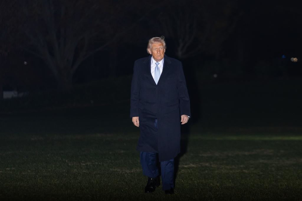 11月16日,在美國首都華盛頓,美國總統(tǒng)特朗普返回白宮。新華社記者胡友松攝