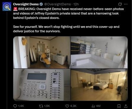 據(jù)報(bào)道,根據(jù)貼文聲明,視頻拍攝了愛潑斯坦私人島嶼住宅相關(guān)景象。