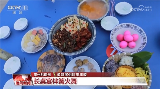 貴州黔南州:長(zhǎng)桌宴伴篝火舞