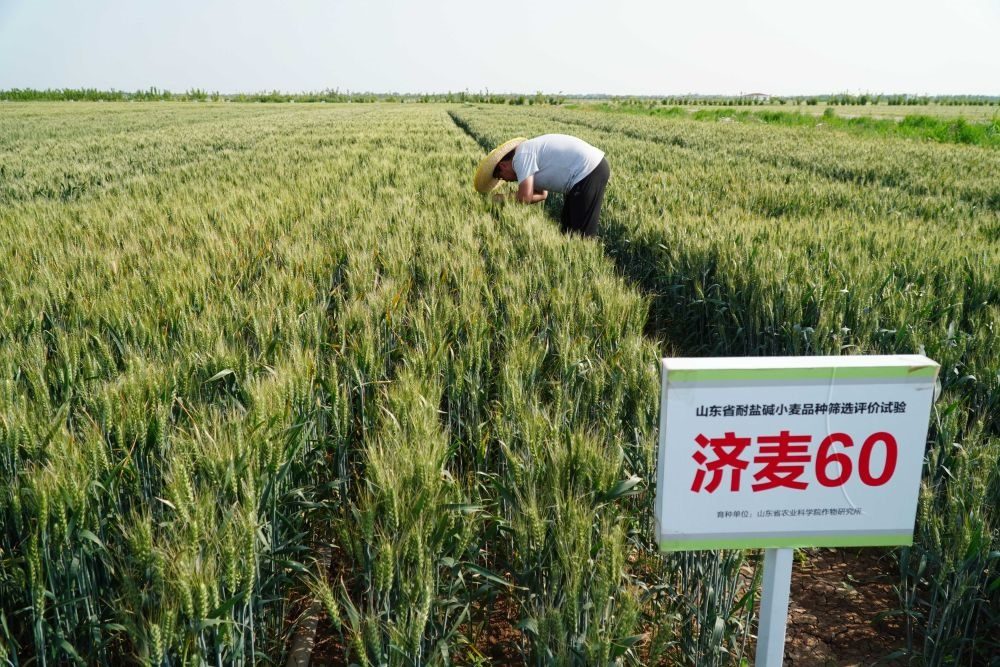 “這是山東省農(nóng)業(yè)科學(xué)院作物所小麥遺傳育種團隊專門針對旱地、鹽堿地培育的新品種。”山東省農(nóng)業(yè)科學(xué)院作物所研究員曹新有說,2022年夏收時測產(chǎn),在土壤含鹽量3.75‰的土地上,“濟麥60”平均畝產(chǎn)460.98公斤,創(chuàng)鹽堿地小麥高產(chǎn)紀錄。