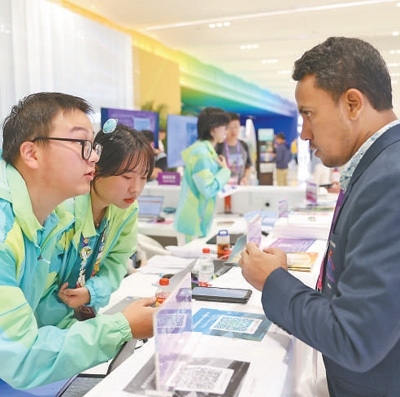 杭州亞運(yùn)會(huì)主媒體中心志愿者為記者提供咨詢服務(wù)。本報(bào)記者 張武軍攝