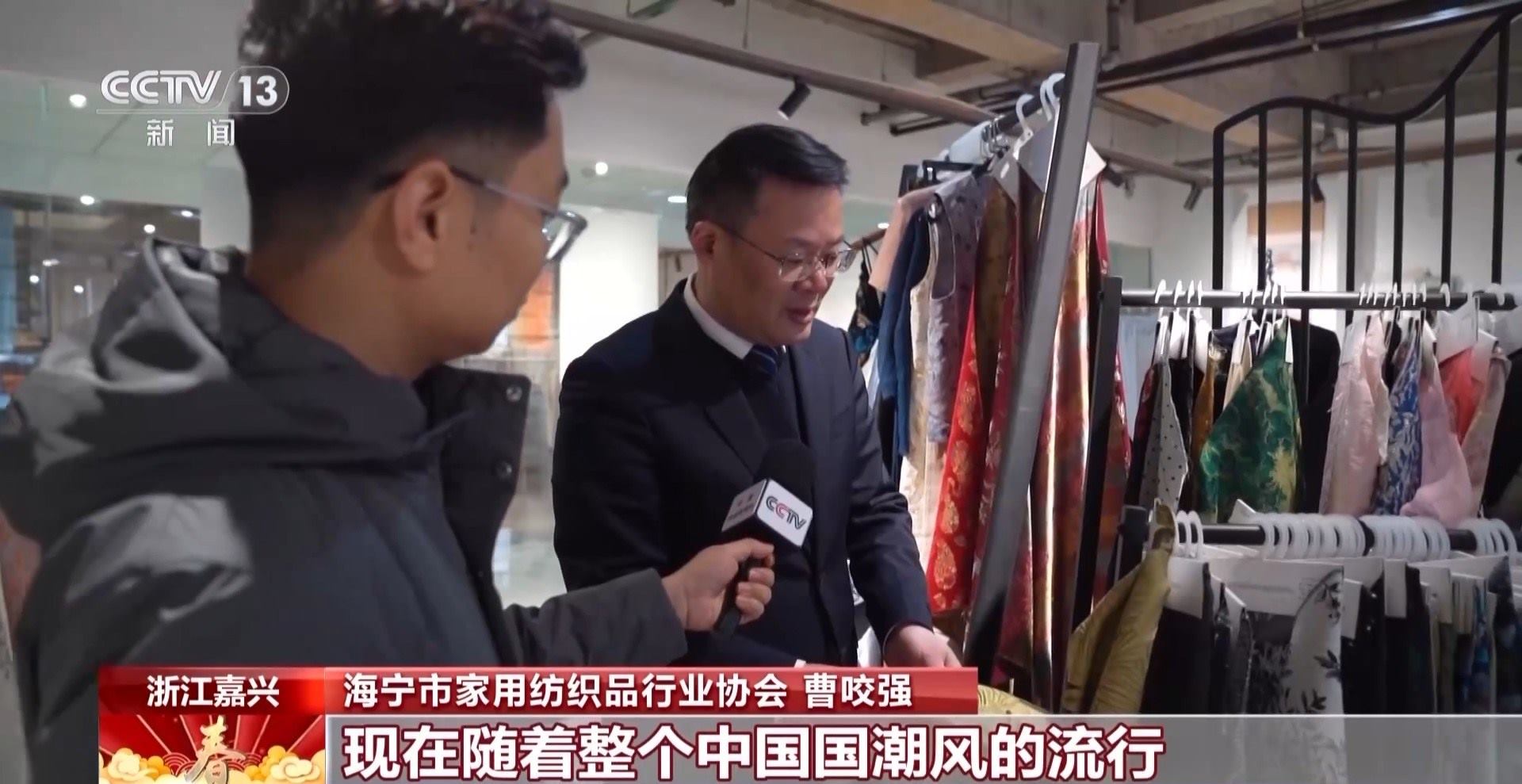除了生產(chǎn)馬面裙布料,當(dāng)?shù)仄髽I(yè)還在生產(chǎn)開(kāi)發(fā)國(guó)風(fēng)服飾面料。馬面裙引領(lǐng)的中國(guó)風(fēng)時(shí)尚新潮流,也受到海外消費(fèi)者的喜愛(ài)。