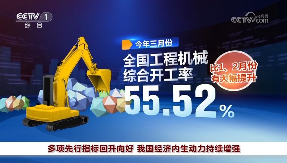 3月份,基礎設施建設及重大工程進度加快。挖掘機大數(shù)據(jù)顯示,全國工程機械綜合開工率達到55.52%,比1、2月份大幅提升。