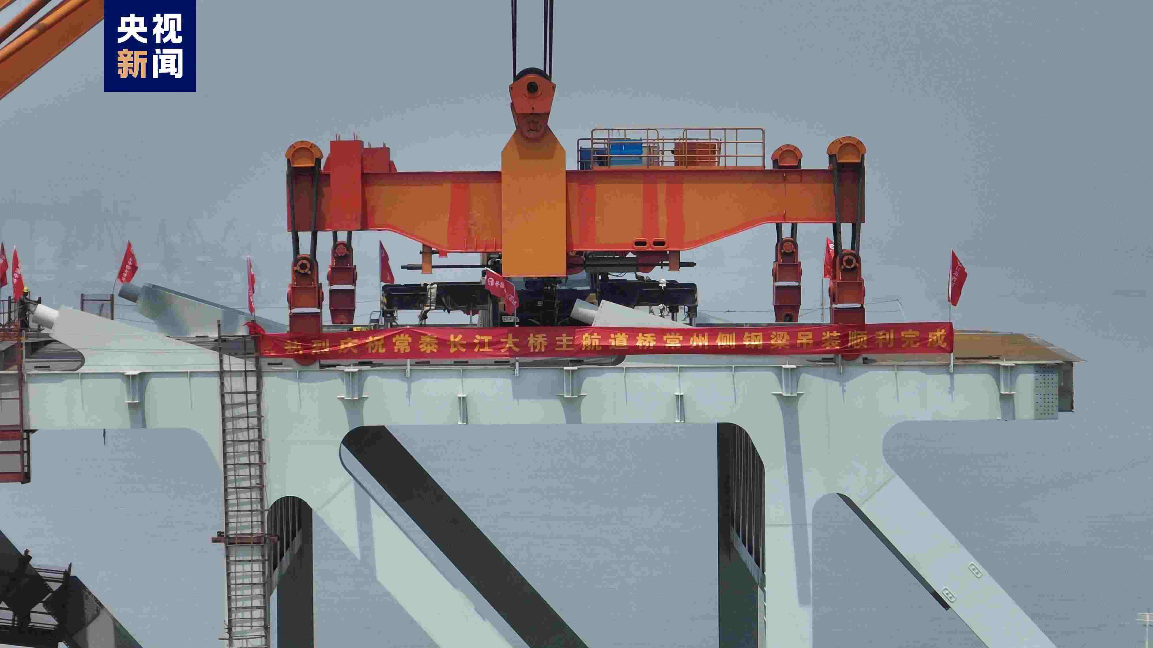 5月7日上午,常泰長江大橋主航道橋常州側(cè),最后一個大節(jié)段鋼梁平穩(wěn)吊裝完成,標(biāo)志著常泰長江大橋常州側(cè)主體工程全部完成,全橋預(yù)計6月合龍。