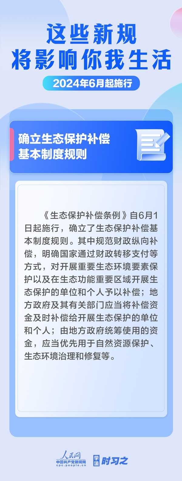 ? ? 保障糧食有效供給;確立生態(tài)保護(hù)補償基本制度規(guī)則;規(guī)范保障海警機構(gòu)依法履職……6月起,這些新規(guī)施行,將影響你我生活。