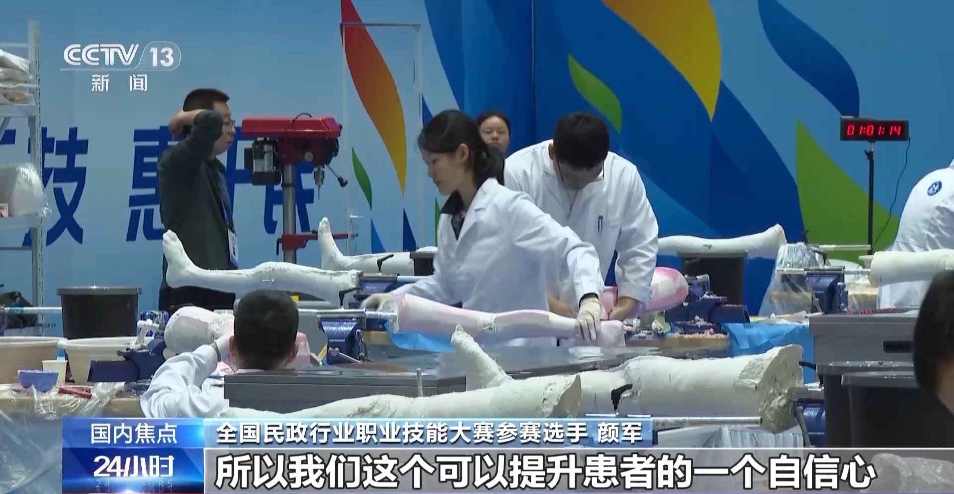 全國(guó)民政行業(yè)職業(yè)技能大賽參賽選手 畢珂磊:通過(guò)自己的雙手,讓殘疾人可以真正地站起來(lái),看著他們能開(kāi)心地走起來(lái),我們從內(nèi)心感到非常高興。