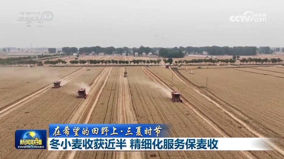 央視網(wǎng)消息(新聞聯(lián)播):農(nóng)業(yè)農(nóng)村部最新數(shù)據(jù)顯示,當(dāng)前全國已收獲冬小麥面積1.57億畝,收獲進度近半。各地因地制宜推出了各類服務(wù)舉措,保障小麥顆粒歸倉。