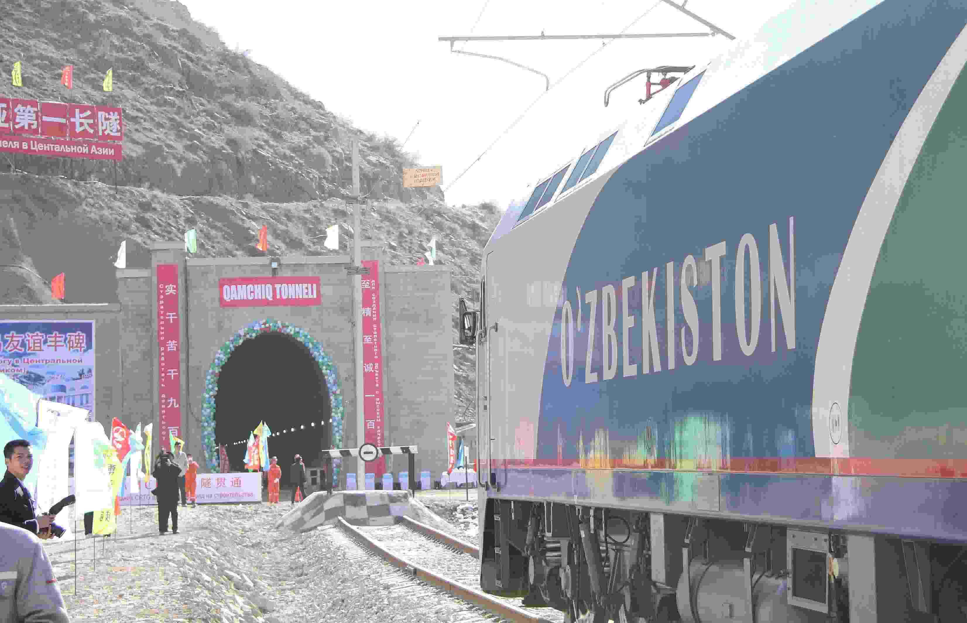 △ 2016年2月27日,一列專列停在烏茲別克斯坦安格連至琶布鐵路甘姆奇克隧道進口。甘姆奇克隧道是中吉烏鐵路的重要一環(huán),對促進烏茲別克斯坦經(jīng)濟社會發(fā)展和共建“一帶一路”倡議的實施具有重大意義。