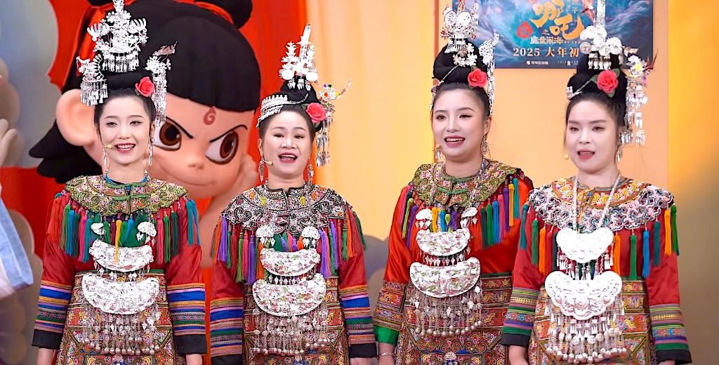 近日,貴州“舞樂(lè)蟬歌”樂(lè)團(tuán)的成員們,在電影《哪吒之魔童鬧海》的新春鬧海直播現(xiàn)場(chǎng)表演侗族大歌。(受訪者供圖)