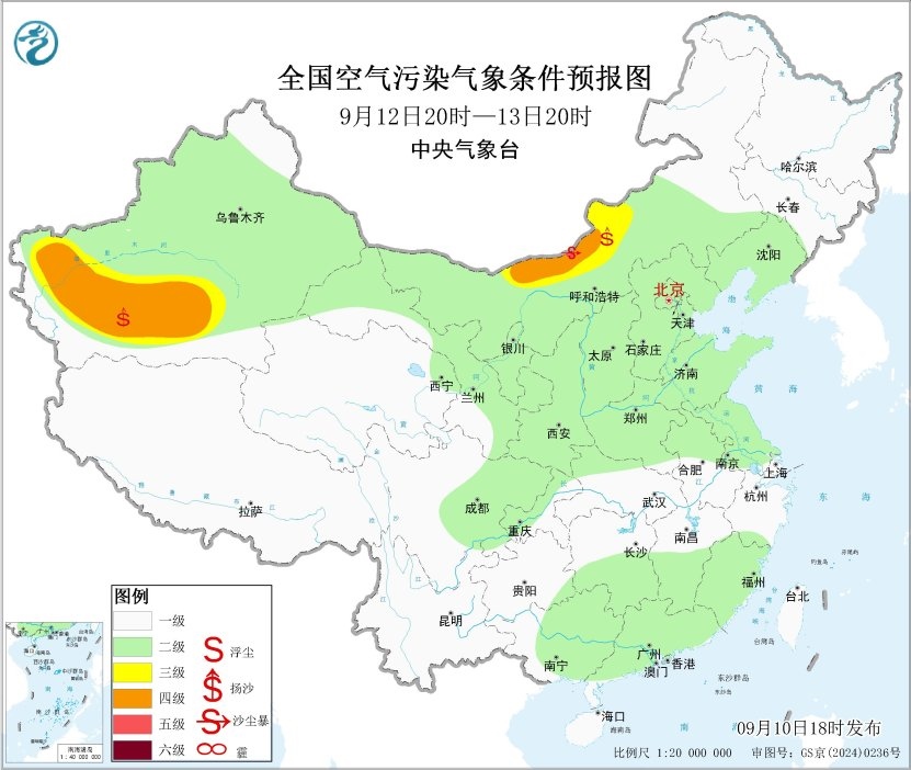 全國大部大氣擴散條件較好 13日內(nèi)蒙古中部偏北地區(qū)有沙塵