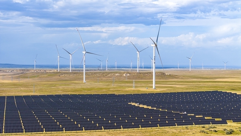 昔日的戈壁荒漠,如今由太陽能光伏板匯聚成“藍(lán)色海洋”,由風(fēng)力發(fā)電機(jī)組成“白色森林”,正孕育著無限“風(fēng)光”。