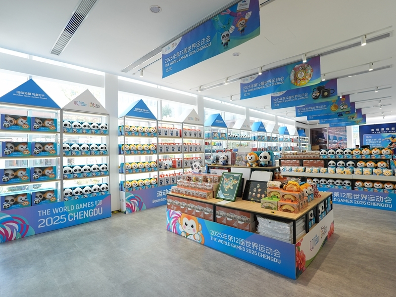 這是8月3日在成都世運會運動員村A區(qū)拍攝的官方特許商品零售店內的紀念品。