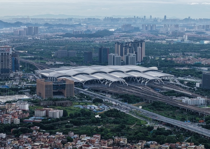 這是8月25日拍攝的廣州南站(無(wú)人機(jī)照片)。廣南聯(lián)絡(luò)線將從廣州南站導(dǎo)出,一站直達(dá)位于中心城區(qū)的廣州站。