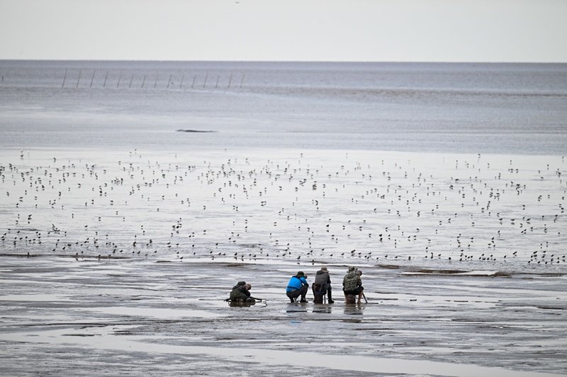 8月25日,攝影愛好者、鳥類保護(hù)者在東臺條子泥濕地拍攝觀測鳥類。