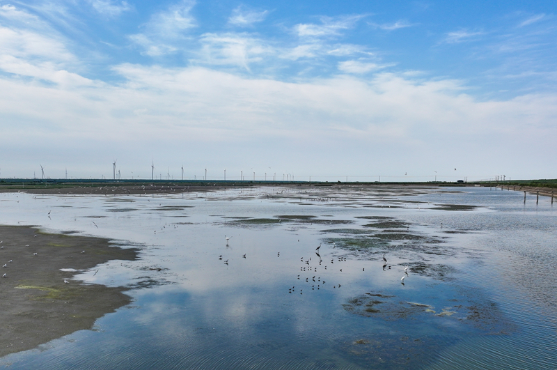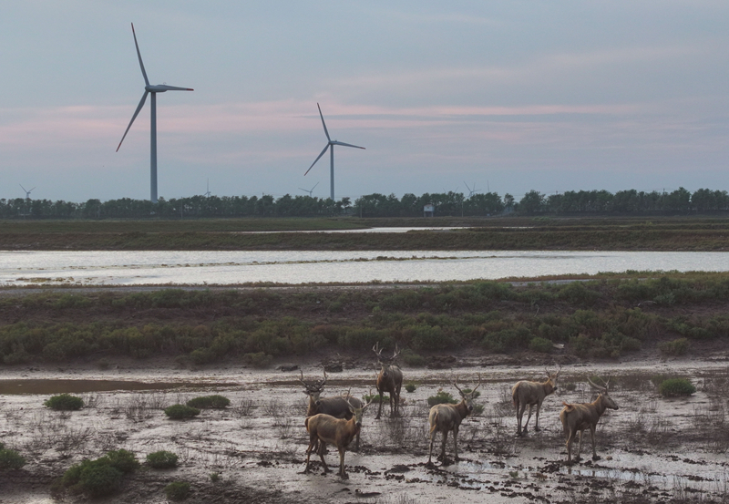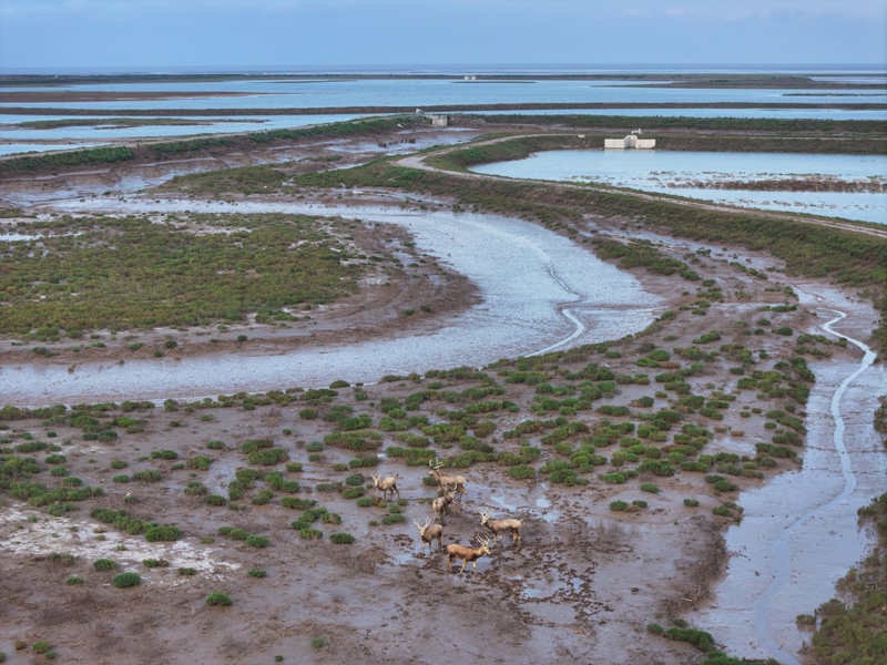 江蘇省鹽城市東臺市條子泥濕地區(qū)域總面積129萬畝。2019年,作為中國黃(渤)海候鳥棲息地(第一期)重要組成部分被列入世界遺產(chǎn)名錄。近年來,條子泥濕地秉承“基于自然的解決方案”理念,開展了川水灣海岸帶生態(tài)保護(hù)項(xiàng)目,并在東臺海堤西側(cè)專門辟出720畝魚塘,打造了國內(nèi)第一塊固定高潮位棲息地。生態(tài)保護(hù)修復(fù)工程的實(shí)施使條子泥一些珍稀物種種群數(shù)量屢創(chuàng)新高,大批的水鳥、成群的麋鹿等野生動物在此“落戶”,濕地修復(fù)初顯成效。
