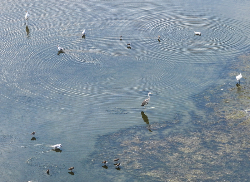 8月25日,群鳥棲息在東臺條子泥濕地“720”高潮位棲息地(無人機(jī)照片)。