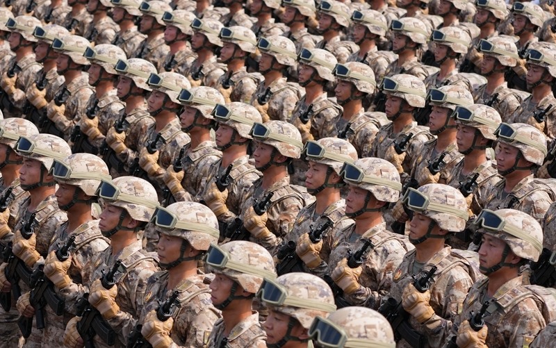 9月3日,紀(jì)念中國人民抗日戰(zhàn)爭暨世界反法西斯戰(zhàn)爭勝利80周年大會在北京隆重舉行。這是網(wǎng)絡(luò)空間作戰(zhàn)方隊接受檢閱。