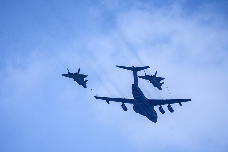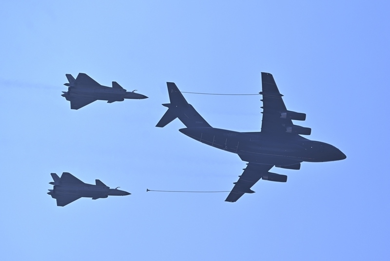 9月3日,紀(jì)念中國人民抗日戰(zhàn)爭暨世界反法西斯戰(zhàn)爭勝利80周年大會在北京隆重舉行。這是加受油機(jī)梯隊接受檢閱。