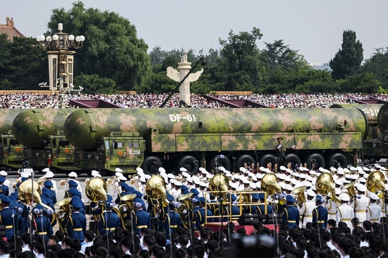 9月3日,紀(jì)念中國人民抗日戰(zhàn)爭暨世界反法西斯戰(zhàn)爭勝利80周年大會在北京隆重舉行。這是火箭軍方隊接受檢閱。