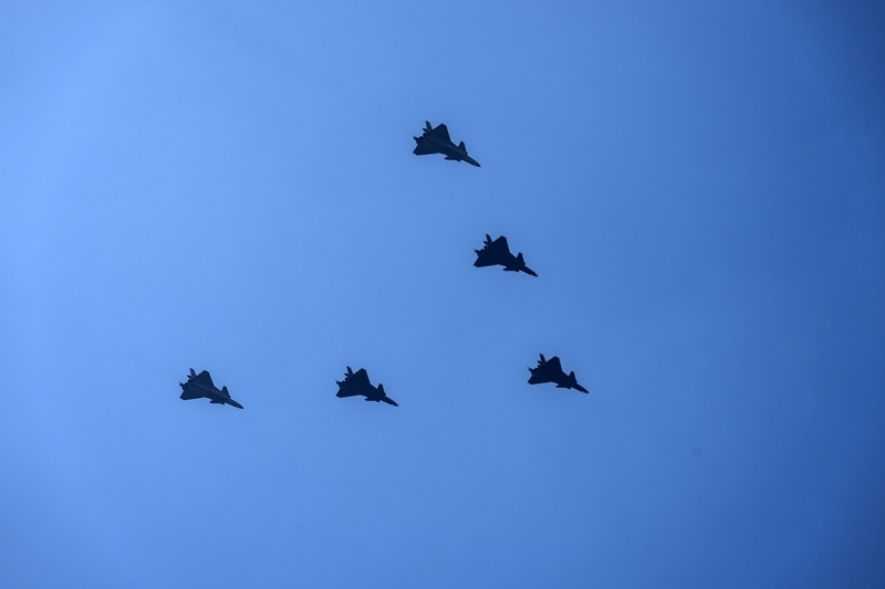 9月3日,紀(jì)念中國人民抗日戰(zhàn)爭暨世界反法西斯戰(zhàn)爭勝利80周年大會在北京隆重舉行。這是殲擊機(jī)梯隊接受檢閱。