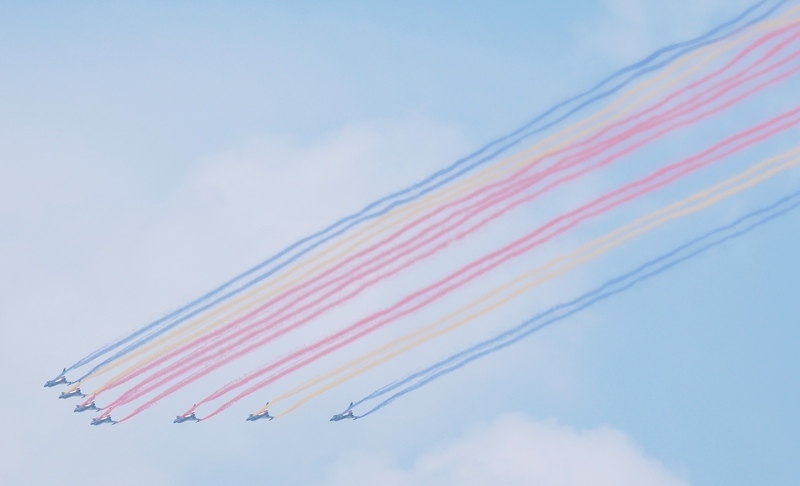 9月3日,紀(jì)念中國人民抗日戰(zhàn)爭暨世界反法西斯戰(zhàn)爭勝利80周年大會在北京隆重舉行。這是教練機(jī)梯隊接受檢閱。