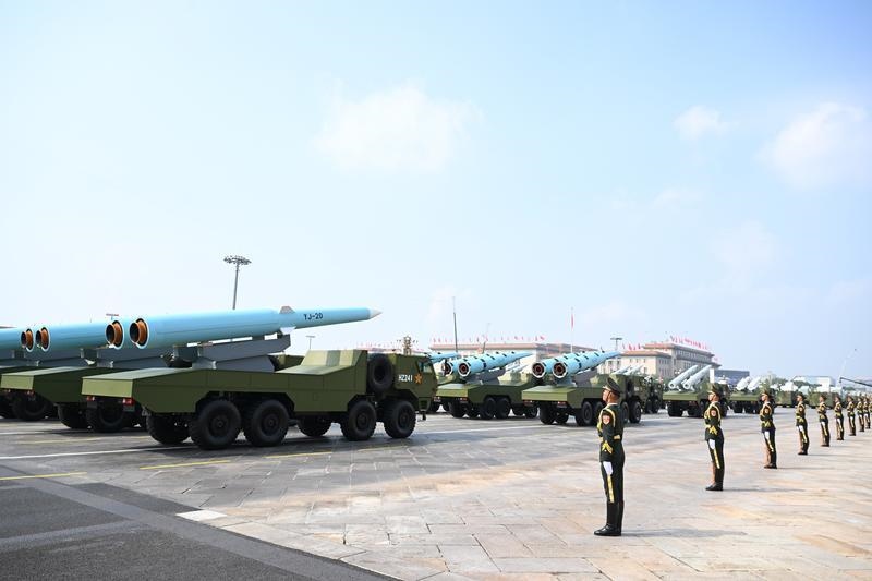 9月3日,紀念中國人民抗日戰(zhàn)爭暨世界反法西斯戰(zhàn)爭勝利80周年大會在北京隆重舉行。這是巡航導彈方隊接受檢閱。