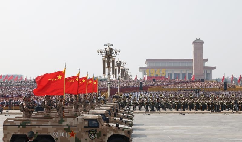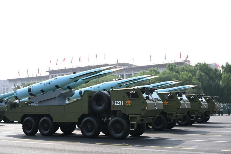 9月3日,紀念中國人民抗日戰(zhàn)爭暨世界反法西斯戰(zhàn)爭勝利80周年大會在北京隆重舉行。這是反艦導彈方隊接受檢閱。