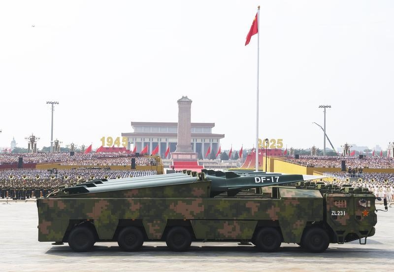 9月3日,紀念中國人民抗日戰(zhàn)爭暨世界反法西斯戰(zhàn)爭勝利80周年大會在北京隆重舉行。這是高超聲速導彈方隊接受檢閱。