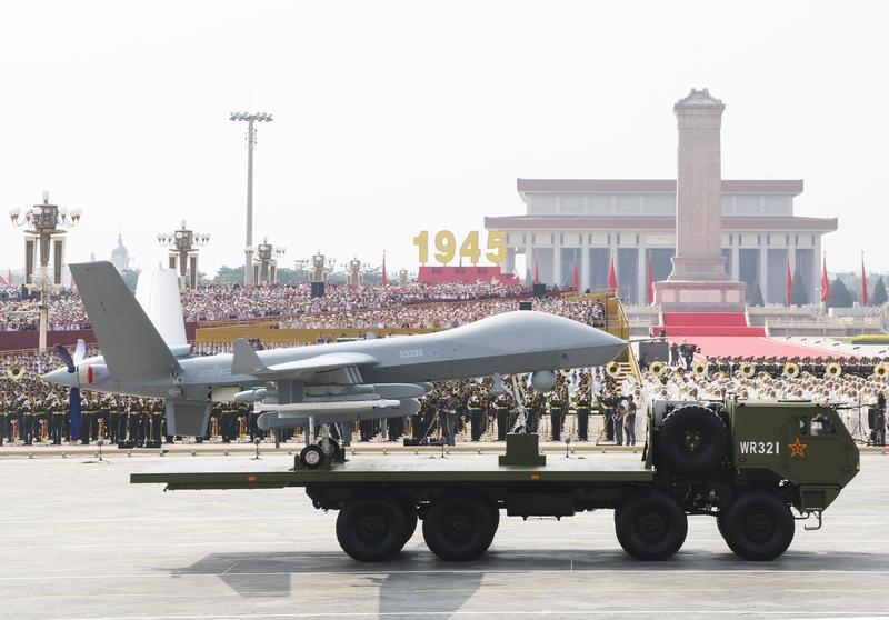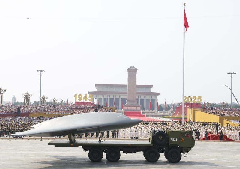 9月3日,紀念中國人民抗日戰(zhàn)爭暨世界反法西斯戰(zhàn)爭勝利80周年大會在北京隆重舉行。這是空中無人作戰(zhàn)方隊接受檢閱。