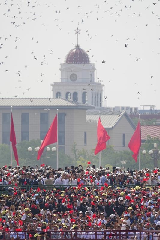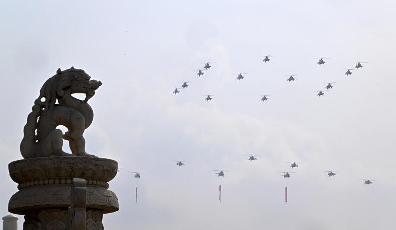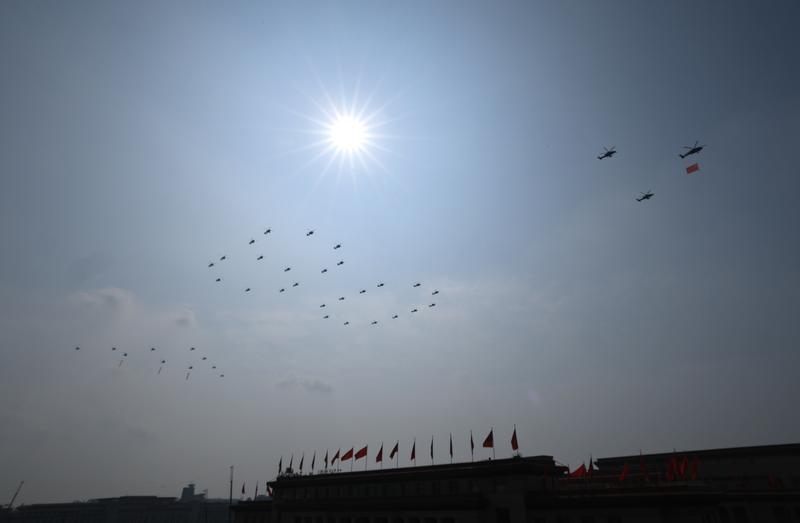 9月3日,紀念中國人民抗日戰(zhàn)爭暨世界反法西斯戰(zhàn)爭勝利80周年大會在北京隆重舉行。這是教練機梯隊接受檢閱。