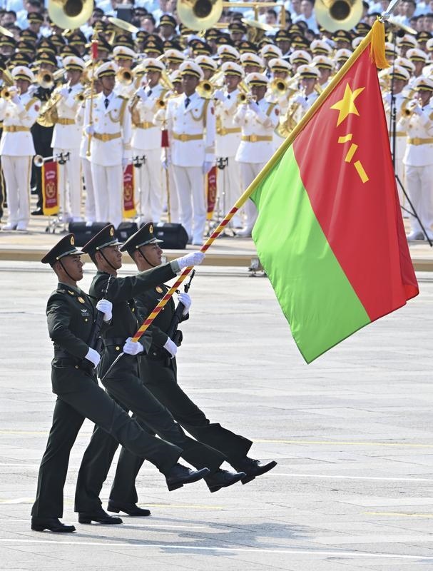 9月3日,紀念中國人民抗日戰(zhàn)爭暨世界反法西斯戰(zhàn)爭勝利80周年大會在北京隆重舉行。這是戰(zhàn)旗方隊接受檢閱。