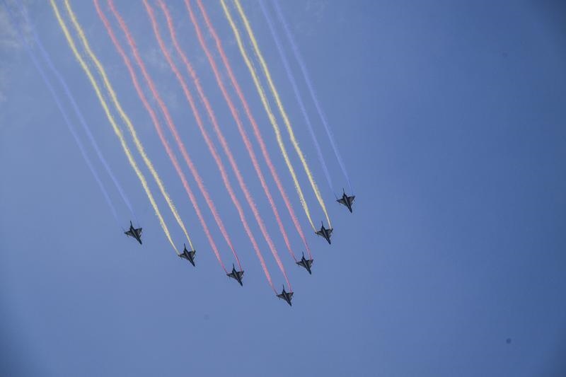 9月3日,紀念中國人民抗日戰(zhàn)爭暨世界反法西斯戰(zhàn)爭勝利80周年大會在北京隆重舉行。這是殲擊機梯隊接受檢閱。
