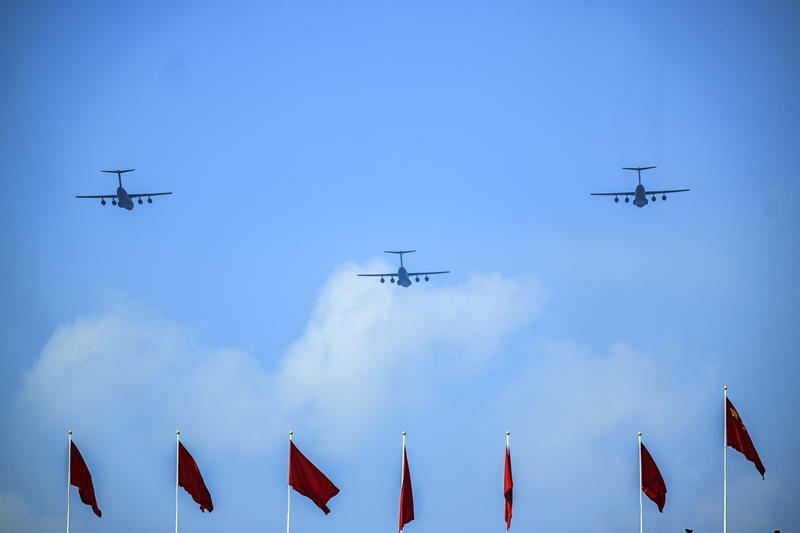 9月3日,紀念中國人民抗日戰(zhàn)爭暨世界反法西斯戰(zhàn)爭勝利80周年大會在北京隆重舉行。這是運輸機梯隊接受檢閱。