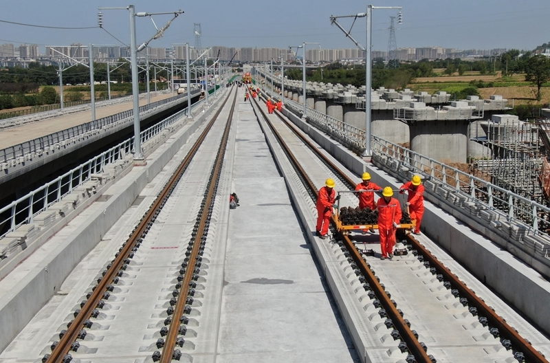 9月8日,在西十高鐵建設(shè)現(xiàn)場西安東至藍(lán)田作業(yè)區(qū)間,施工人員將首對500米長的無縫鋼軌平穩(wěn)鋪設(shè)在無砟軌道板上,標(biāo)志著由西成客專陜西公司建設(shè)、中鐵四局施工的西十高鐵全線鋪軌正式啟動。