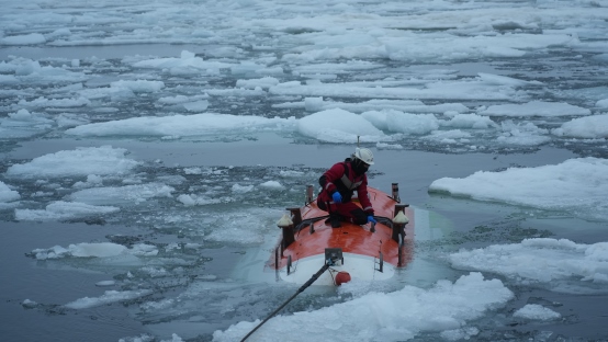 特別是在海冰覆蓋率大于80%的中央海盆,科考隊進行了國際上首次加克洋中脊的載人深潛科考,“奮斗者”號在29天中完成32個潛次,潛次平均水中時間大于9小時,平均海底作業(yè)時間大于6小時,最大下潛深度5277米。深潛作業(yè)經(jīng)歷了極晝、極夜、融冰期和結冰期,克服了低溫、大風困難。