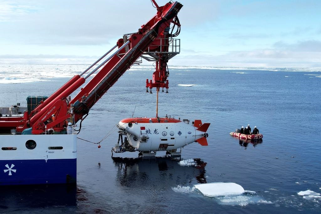 搭載著“奮斗者”號載人深潛科考隊的“探索三號”于今年7月22日從三亞出發(fā),會同“蛟龍”號載人深潛團隊赴北冰洋海域執(zhí)行深潛任務。其間,科考隊在北冰洋作業(yè)56天,進行了一系列科學考察和試驗。在海冰覆蓋率大于80%的北冰洋中央海盆,科考隊進行了國際上首次加克洋中脊的載人深潛科考,最大下潛深度達5277米。
