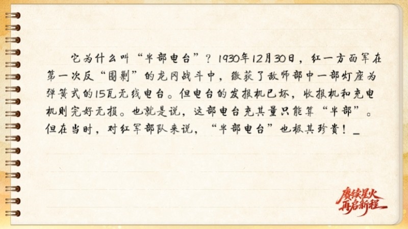 它為什么叫“半部電臺”?1930年12月30日,紅一方面軍在第一次反“圍剿”的龍岡戰(zhàn)斗中,繳獲了敵師部中一部燈座為彈簧式的15瓦無線電臺。但電臺的發(fā)報機(jī)已壞,收報機(jī)和充電機(jī)則完好無損。也就是說,這部電臺充其量只能算“半部”。但在當(dāng)時,對紅軍部隊來說,“半部電臺”也極其珍貴!