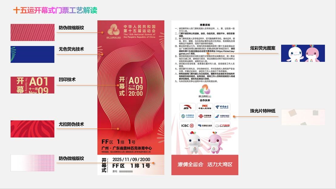 第十五屆全國運動會(以下簡稱“十五運會”)在廣東奧林匹克體育中心璀璨開幕,不僅奏響了粵港澳大灣區(qū)攜手承辦國家級體育盛會的華彩樂章,也讓一份承載著深厚文化底蘊與創(chuàng)新巧思的“文化名片”——開幕式門票同步驚艷亮相。