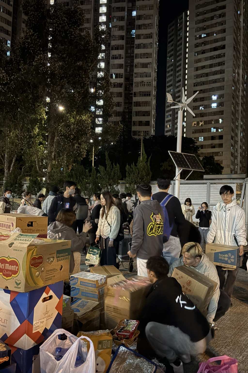 收到物資后,香港義工團(tuán)隊(duì)“愛(ài)心隊(duì)”在校內(nèi)未做停歇,一名隊(duì)員介紹說(shuō),本次支援隊(duì)伍共19人,都是得知災(zāi)情后從香港各區(qū)自發(fā)趕來(lái)。凌晨3點(diǎn),他們和市民忙著把成堆的飲用水和食品分開(kāi)摞齊,好留出通道分發(fā)物資。其間,一些人前往廣福商場(chǎng)為露宿居民發(fā)放被褥、暖貼和水。
