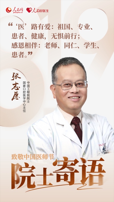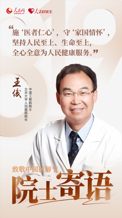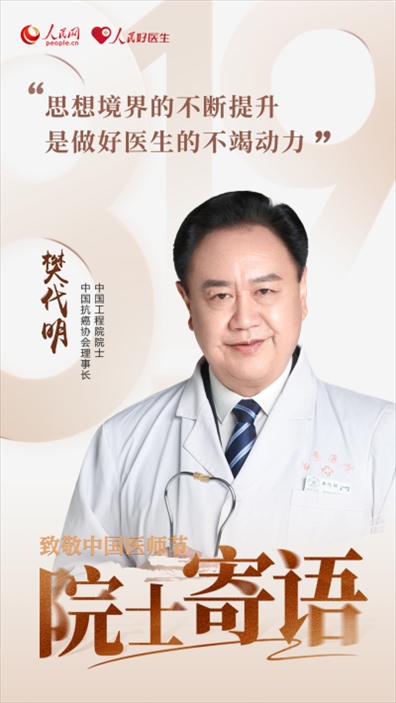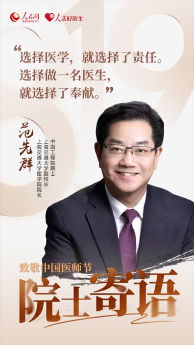 2023年8月19日是第六個(gè)中國(guó)醫(yī)師節(jié),今年醫(yī)師節(jié)的主題是“勇?lián)】凳姑?,鑄就時(shí)代新功”,大力弘揚(yáng)醫(yī)務(wù)工作者的崇高精神。值此之際,人民網(wǎng)、人民好醫(yī)生客戶端邀請(qǐng)中國(guó)工程院和中國(guó)科學(xué)院7位院士,為廣大醫(yī)務(wù)工作者們送上殷切的節(jié)日囑托。