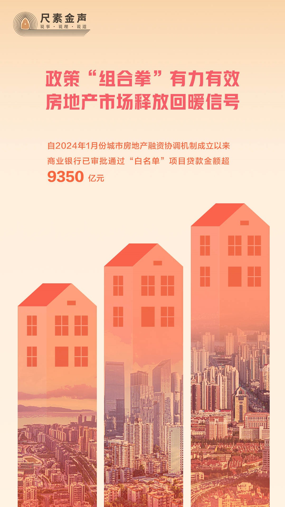隨著城市房地產(chǎn)融資協(xié)調(diào)機制落地見效,更多房地產(chǎn)項目迎來資金“及時雨”。最新數(shù)據(jù)顯示,自1月份該機制成立以來,商業(yè)銀行已按內(nèi)部審批流程審批通過“白名單”項目貸款金額超9350億元,推動項目按時保質(zhì)交付。
