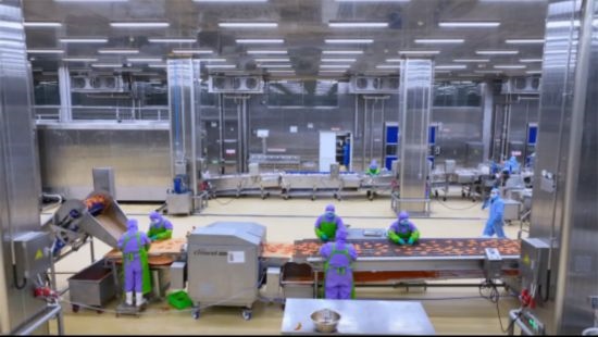 初夏時節(jié),膠東半島的微風中帶著一絲清爽,而春雪集團的生產基地內卻是一派熱火朝天的景象。走進春雪集團的生產廠區(qū),廠房里的溫度、濕度甚至空氣流動都在嚴密控制之下,身穿防護服的員工們在現(xiàn)代化流水線上有條不紊地操作。眼前的白羽雞在檢驗、宰殺、分割、滾揉、調理與包裝等環(huán)節(jié)中“闖關”般地被一一標記、質檢,井然有序地進入下一道工序。