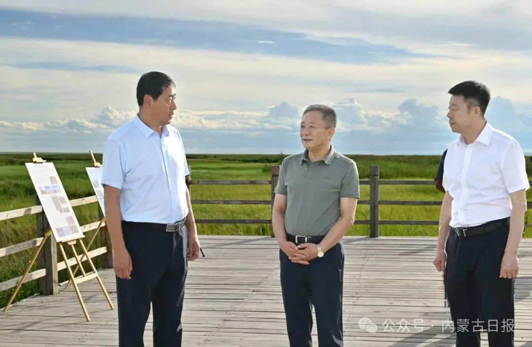 8月3日,自治區(qū)黨委書記孫紹騁在烏蘭諾爾濕地調(diào)研生態(tài)保護(hù)與建設(shè)情況。草原云·內(nèi)蒙古新聞網(wǎng)記者 馬建兵 攝