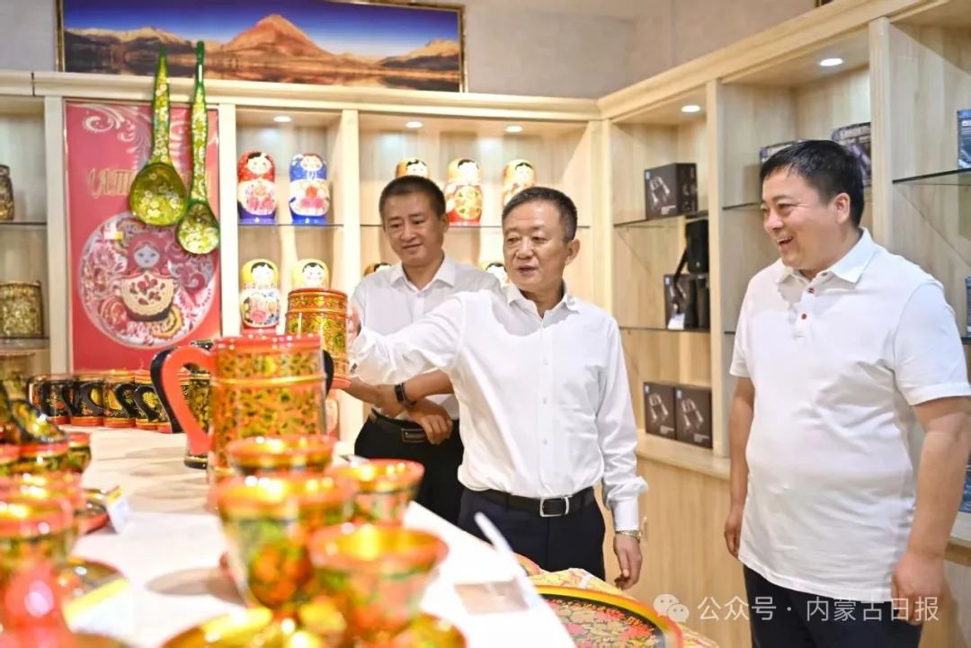 8月4日,自治區(qū)黨委書記孫紹騁在滿洲里市調(diào)研邊民互市貿(mào)易、落地加工等情況。草原云·內(nèi)蒙古新聞網(wǎng)記者 馬建兵 攝