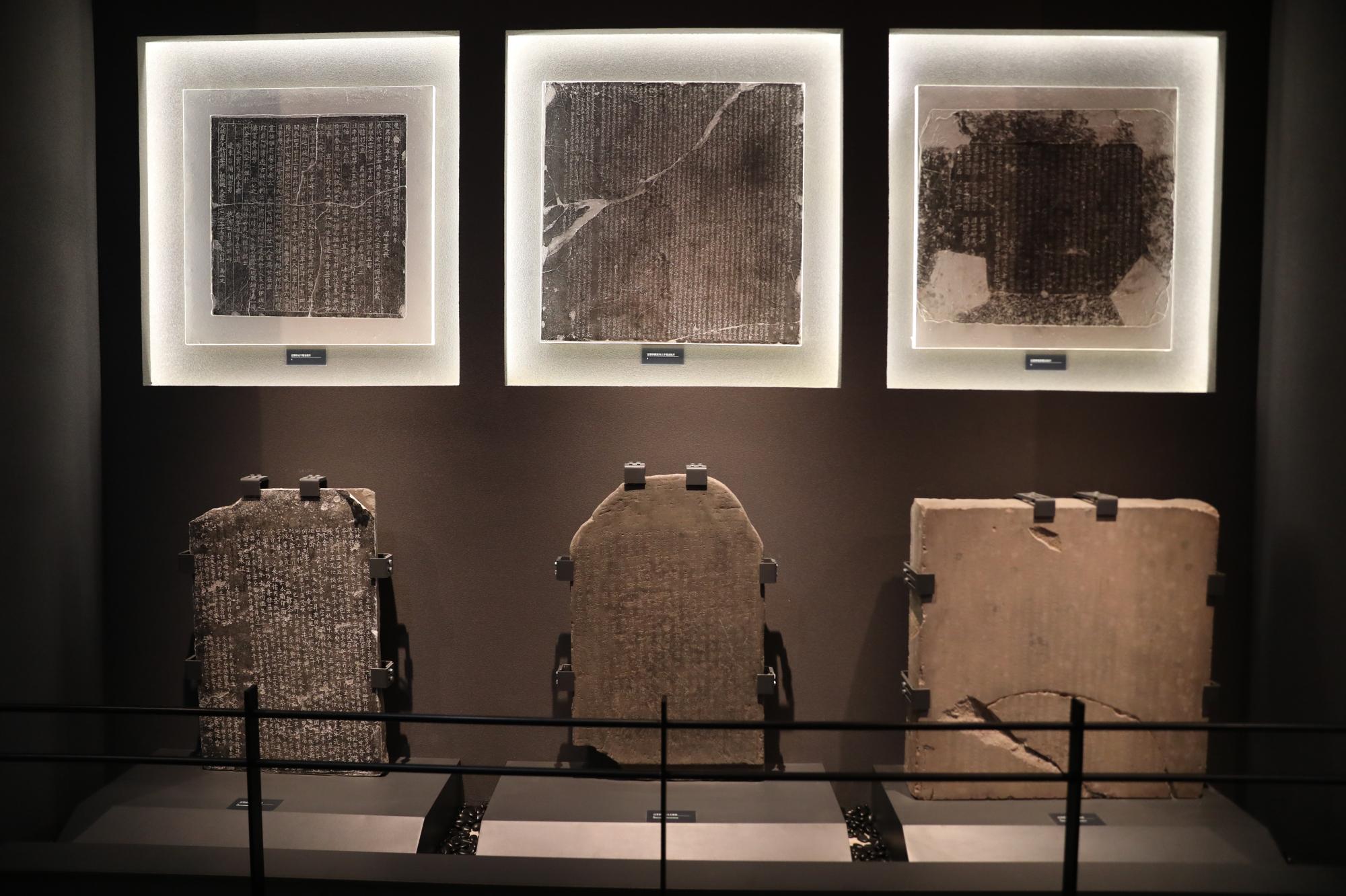 相比之下,耶律祺家族墓的核心價(jià)值在于其文字資料。該墓出土的契丹大字墓志刻于遼天祚帝乾統(tǒng)八年(1108年),志石刻契丹大字46行,總計(jì)約2930余字,除80余個(gè)殘缺字外,尚存2840余字,是考古已發(fā)現(xiàn)的所有契丹大字石刻中字?jǐn)?shù)最多的一件。